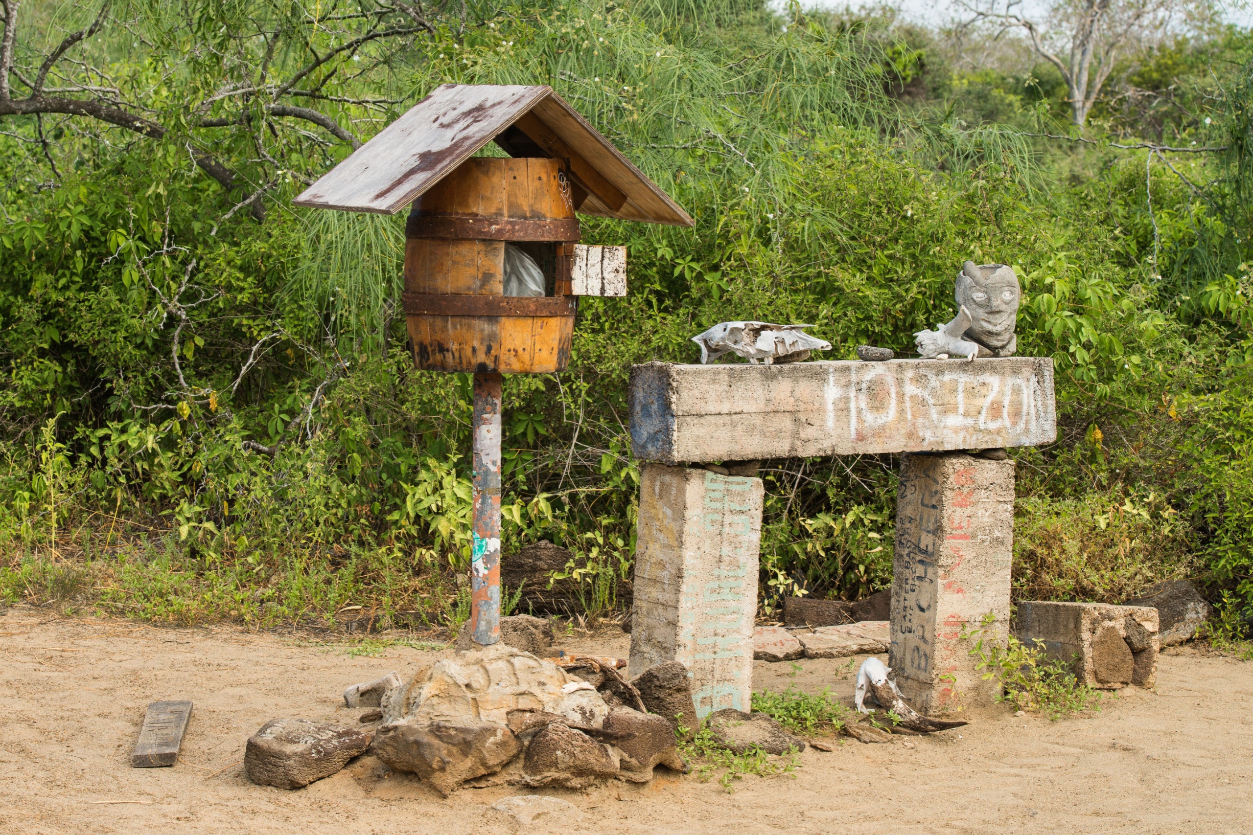 At Post Office Bay on the island of Floreana, a wooden barrel has stood in as a post box since 18th-century whalers placed it there. Visitors still use it today.