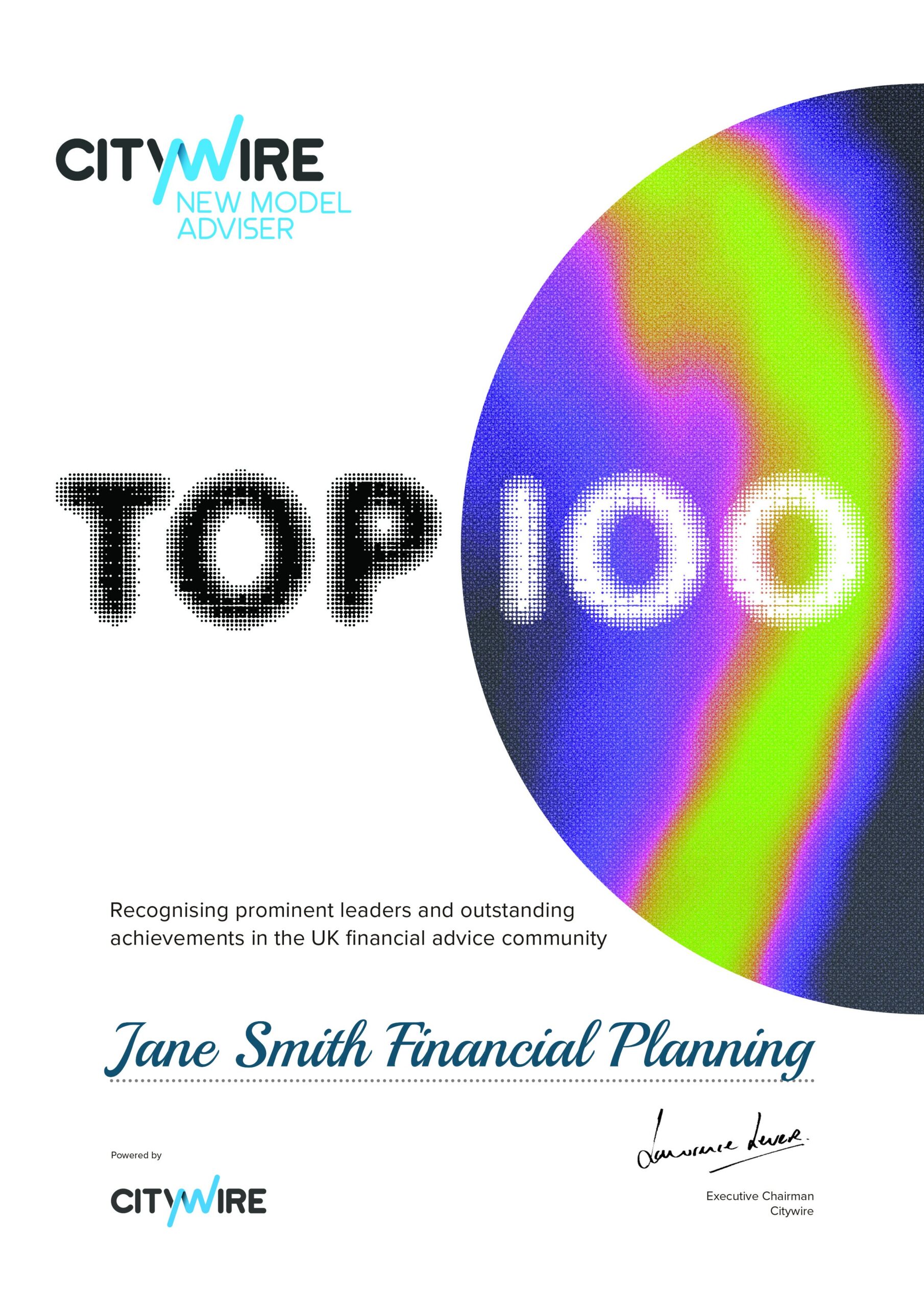 We’re proud to have made the New Model Adviser Top 100 UK Adviser list for over ten years. The award recognises outstanding achievements, celebrates the best of the professional financial planning community and highlights prominent leaders in the UK financial planning profession.